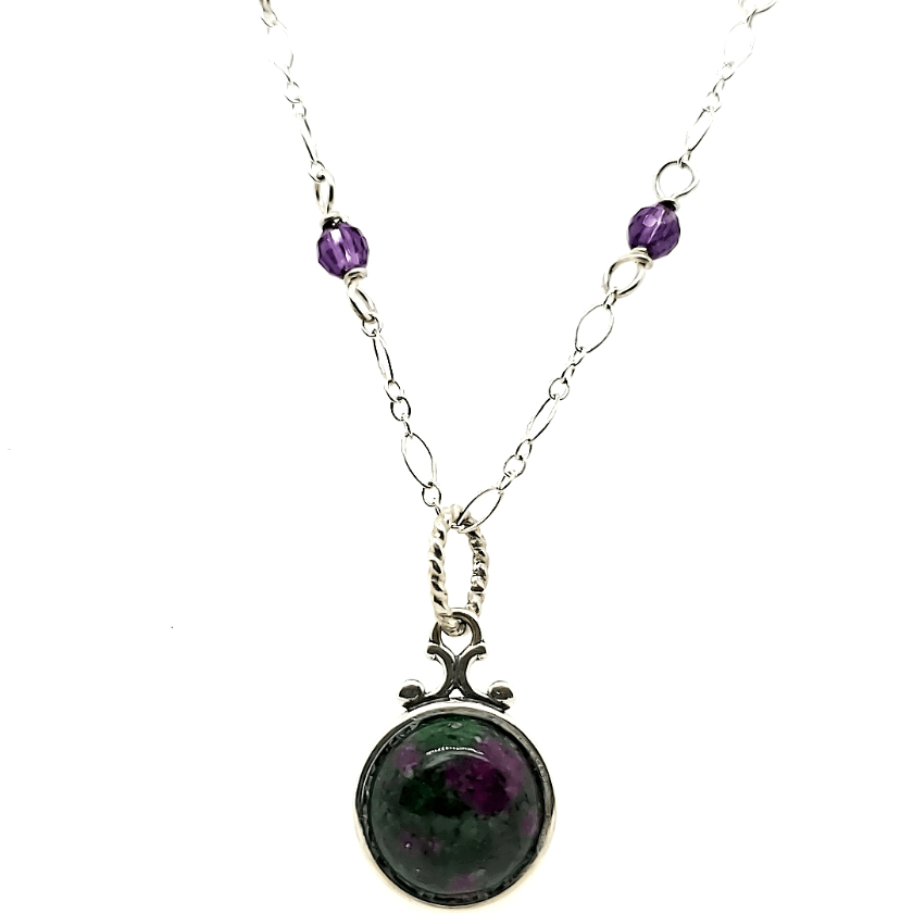 A 19 inch Sterling silver chain accented with faceted Amethyst with a 2 1/4 inch extender.